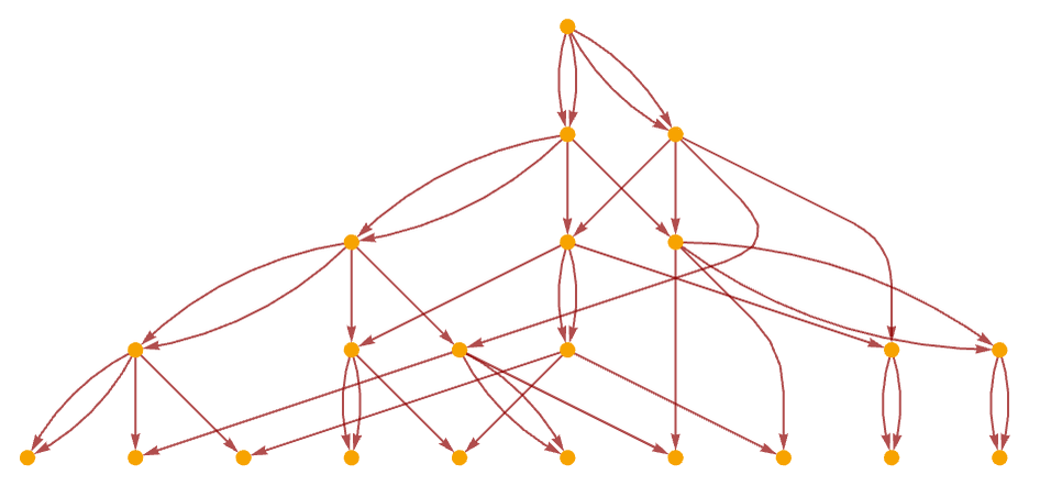 How can we represent a computation’s causal structure? It’s commonly represented as a graph, where the nodes represent simple events (e.g. bit flips) and the directed edges represent causal dependence between these events29. This causal graph is invariant to changes in details like the physical properties of the computer, how information is encoded, and the order of causally-independent events30. It captures the relevant essence of the computation by removing everything the synchroscope can’t measure or infer31.